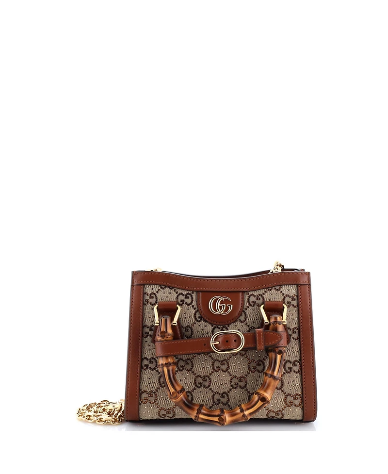 Pre-Owned Gucci Mini Diana Nm Bamboo Handle Tote Crystal Embellished Gg Canvas in Bloomington, MN
