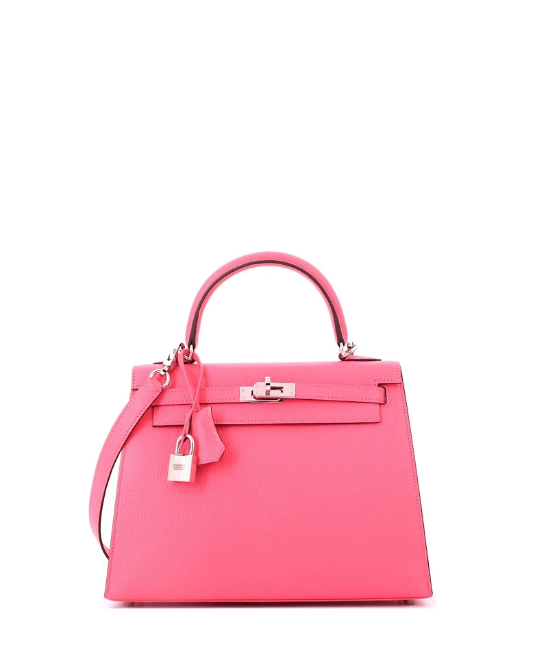 Pre-Owned HERMES Kelly 25 Handbag Pink Chevre Mysore with Palladium Hardware in Bloomington, MN