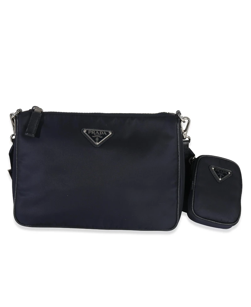 Pre-Owned Prada Navy Re-Nylon and Saffiano Leather Trim Shoulder Bag