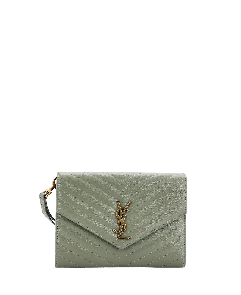 Pre-Owned Saint Laurent Classic Monogram Envelope Wristlet Clutch Matelasse Chevron Leather in Bloomington, MN