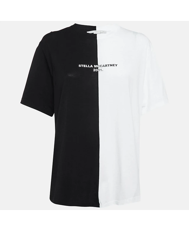 Pre-Owned Stella Mccartney Women's Black /white Logo Print Jersey Cotton T-Shirt