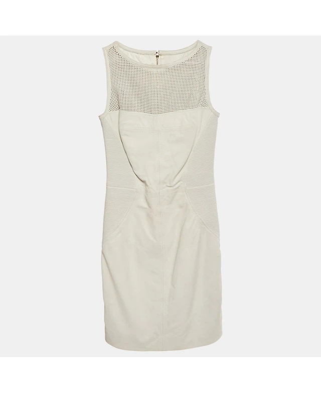 Pre-Owned Versace Women's Collection White Leather Sleeveless Mini Dress
