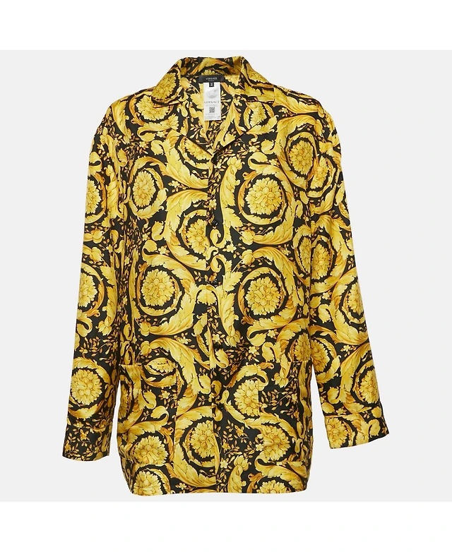Pre-Owned Versace Women's Yellow Barocco Print Silk Pajama Shirt