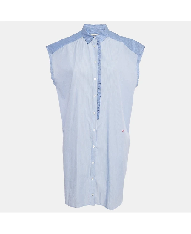 Pre-Owned Zadig & Voltaire Women's Blue Stripe Cotton Button Front Ruffled Rilt Mini Dress