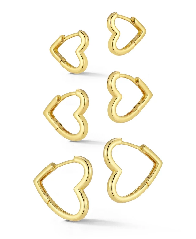 Rachel Zoe Gold Plated Triple Heart Hoop Earrings, 3 Pair Set
