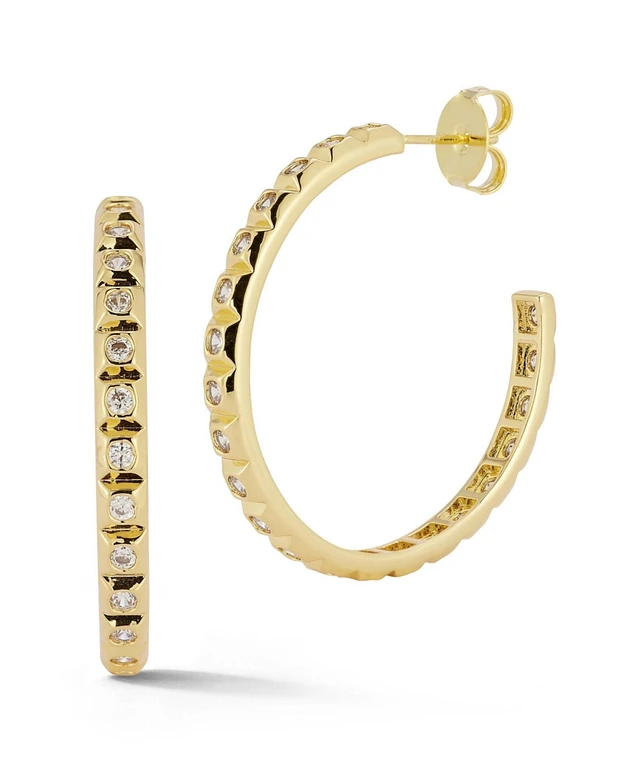 Rachel Zoe 14K Gold Plated Sterling Silver Pave Oval Hoop Earrings