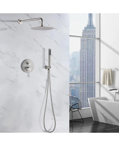 Rainsken Wall Mounted Shower Faucet Set for Bathroom with High Pressure 10" Stainless Steel Rain Shower head Handheld Shower Set, Brushed Nickel