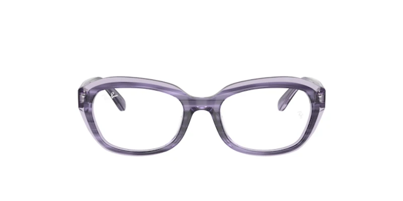 Introducing ray-ban rb1636 optics kids, a unique pair of acetate glasses designed with children in mind. The irregular shape and polished finish give these acetate frames a playful yet stylish look. The frame material is striped violet on transparent violet acetate, adding a touch of vibrancy to any outfit. These eyeglasses can also be fitted with lenses for your convenience. Available with prescription lenses.