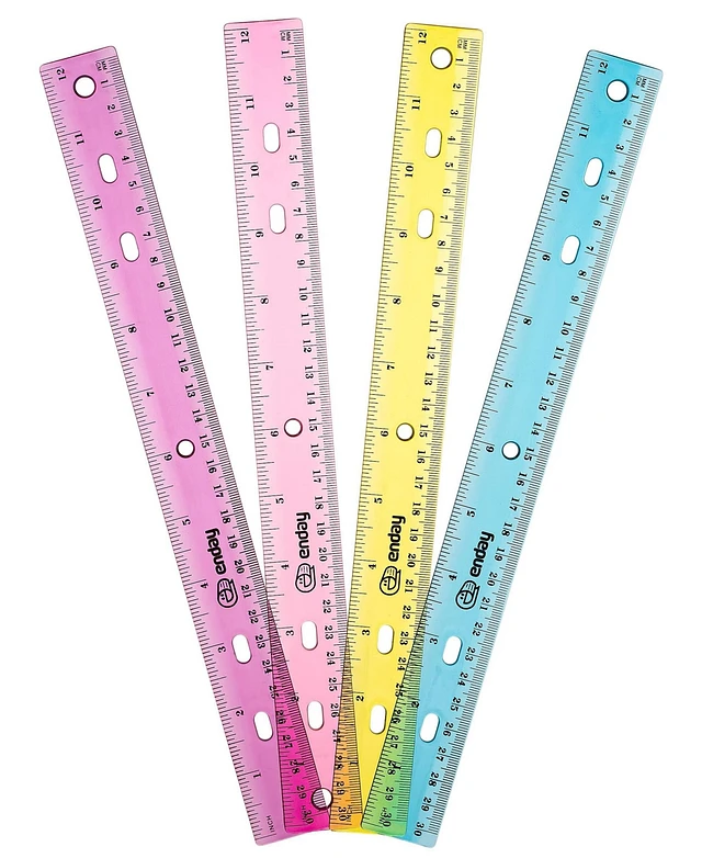 Ruler 12 Inch/ 30 Cm Jeweltone, Inches & Centimeters Plastic Straight Edge Rulers School Supplies, Standard Ruler for Kids Adults, Purple, Pink, Green