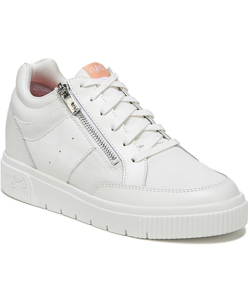 Give your sneaker wardrobe a lift in these everyday women's sneakers with a hidden wedge. Best For: Casual walking and everyday wear. Performance Tech: Exceptional cushioning throughout for standout comfort. Made For Women Fit: Designed for a woman's unique foot shape, muscle movement, and build with a narrower heel, roomier toe, and softer foot cushioning. Materials: Suede or textile with leather and synthetic overlays upper and padded collar. Closure: Side zip for easy on/off and lace-up front for a secure fit. Insole: Surround Fit insole with cushioned Eva heel cup surrounds your foot in comfort. Outsole: Flexible, durable polyurethane outsole. Weight: 320 grams or 11.3 oz per shoe. Heel-to-toe Drop: 30 mm.