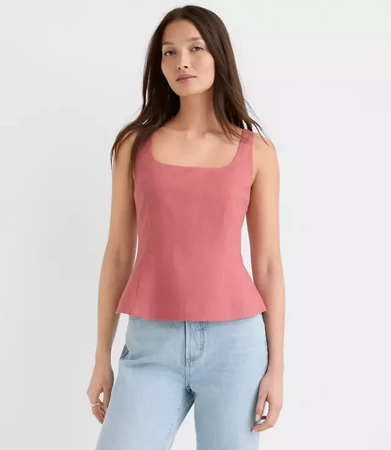 Seamed Linen Cotton Peplum Top