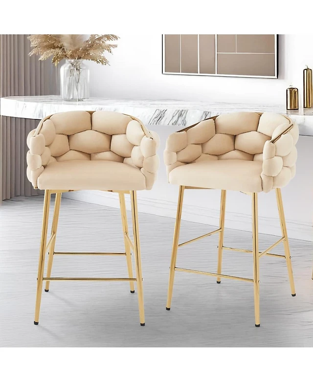 Velvet Upholstered Bar Stools With Button Tufted Wingback Counter Height Bar Chairs Set Of 2 The Pop Home
