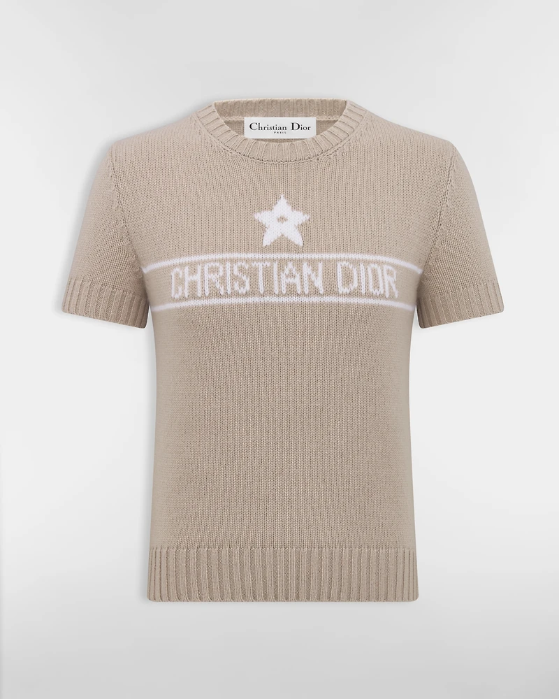 The short-sleeved sweater is a timeless and modern creation. Crafted in a beige cashmere knit, it showcases the House's lucky star and Christian Dior signature on the front. The sweater will pair effortlessly with any casual look.