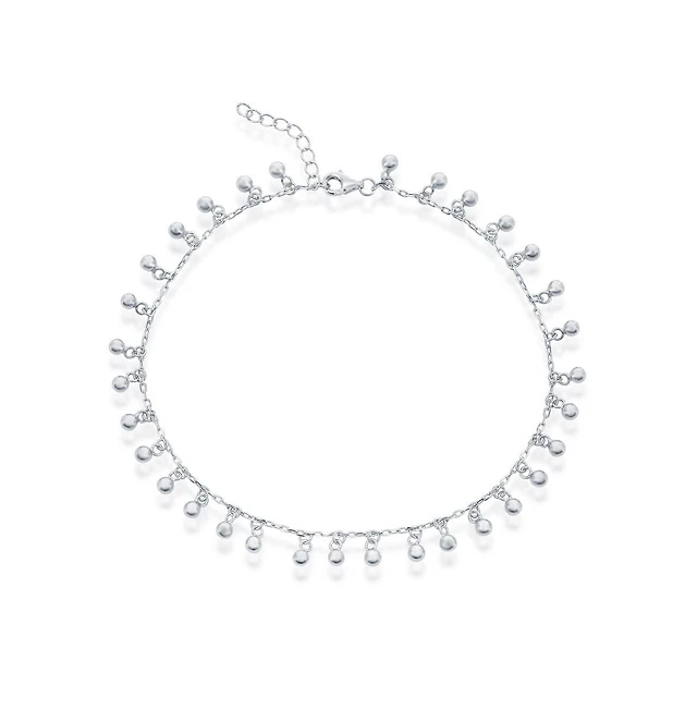 Simona Sterling Silver Beaded Dangling Charms Anklet