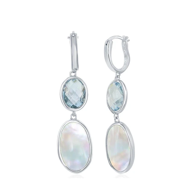 Simona Sterling Silver Oval Blue Topaz and Mother of Pearl Earrings