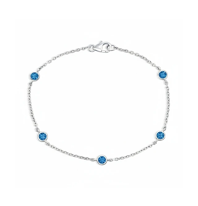 Simona Sterling Silver, Round Bezel-Set Gemstone By The Yard Birthstone Bracelet