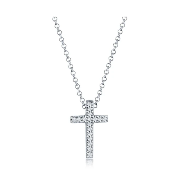 Simona Sterling Silver, Small Pave Cz Cross Necklace