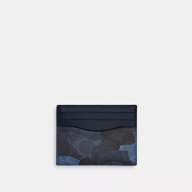 With its compact size and sleek design, the Slim ID Card Case fits perfectly in your pocket or bag—making this men's slim card wallet an ideal travel companion. Crafted of Signature coated canvas, it features multiple pockets fit for business and credit cards that keep you organized on the go. This camo card case also has a handy ID window that’s perfect for nights out on the town.