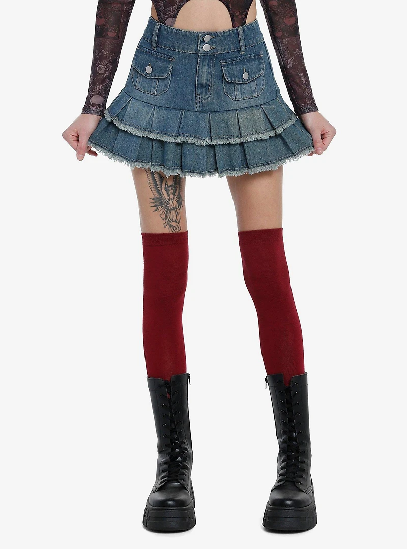 Social Collision Denim Ruffled Mini Skirt