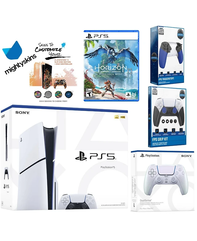 Sony Playstation 5 Slim Disc Bundle with Horizon Forbidden West, Extra Controller, Trigger Stop Kit, Fps Grip Kit and MightySkins Decal Voucher