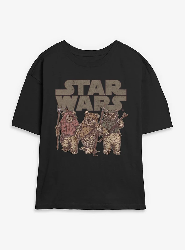 Star Wars Ewok Group Womens Mineral Wash Crop T-Shirt