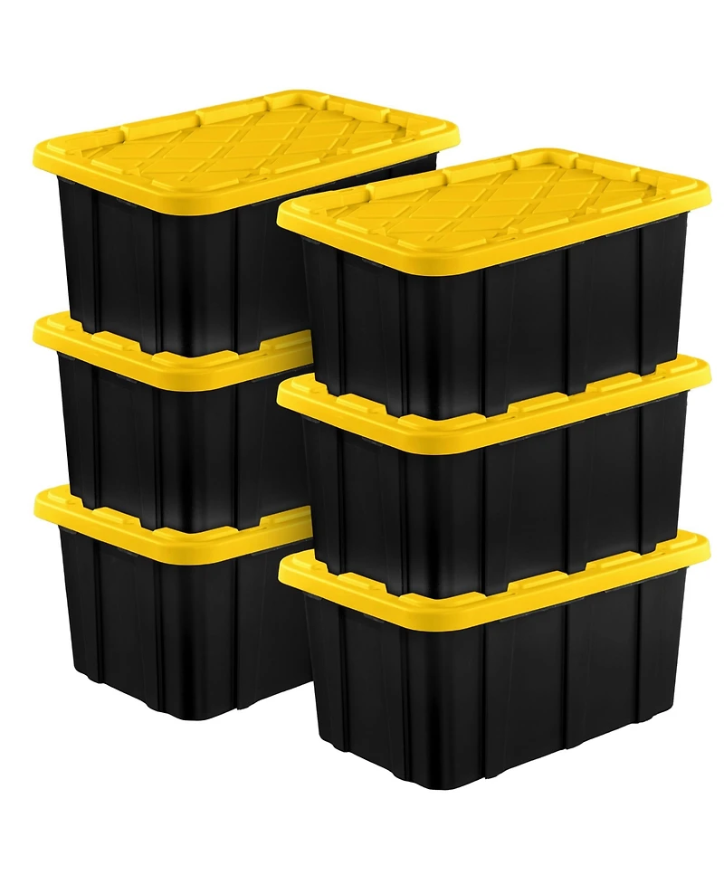 Tackle rugged storage needs in the garage, basement, attic, or back of a pick-up truck with the heavy-duty 38-gallon Industrial Totes from Sterilite. These totes are designed to handle the toughest storage challenges, providing robust property protection. Be confident that stored items will stay protected in the durable 38-gallon Industrial Tote, even when on the go. The grooved lid design and keyholes provide options for tie-downs to simplify transportation, and keep totes in place in the back of a pick-up truck. The reinforced, snap-fit lid secures and keeps items contained. Carry the tote with ease using the comfortable carrying handles, which make for a sure grip when transporting. The deep recessed lids provide stability when stacking for efficient use of storage space, allowing you to maximize your storage area. Made from recycled polypropylene, the base has channeled walls that provide added strength and help to resist crushing under heavier loads.