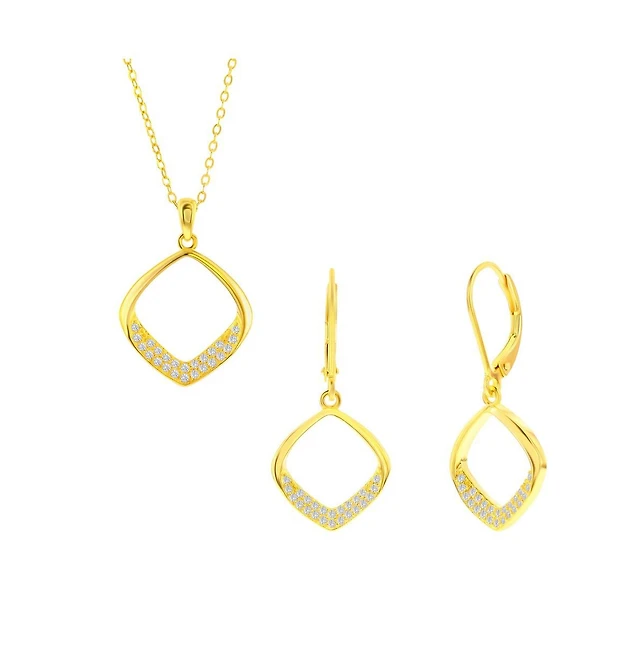 Sterling Silver, Pave Cz Diamond-Shaped Necklace & Earrings Set