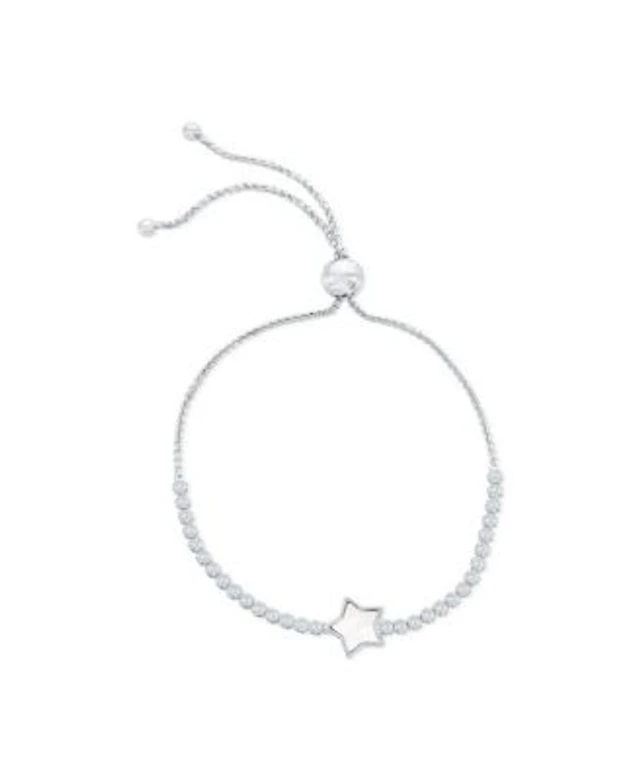 Sterling Silver Star Mop Center Cz Adjustable Bolo Bracelet