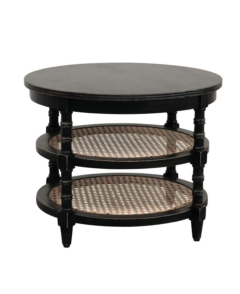 Storied Home 23" Wood Round Table with 2-Cane Shelves