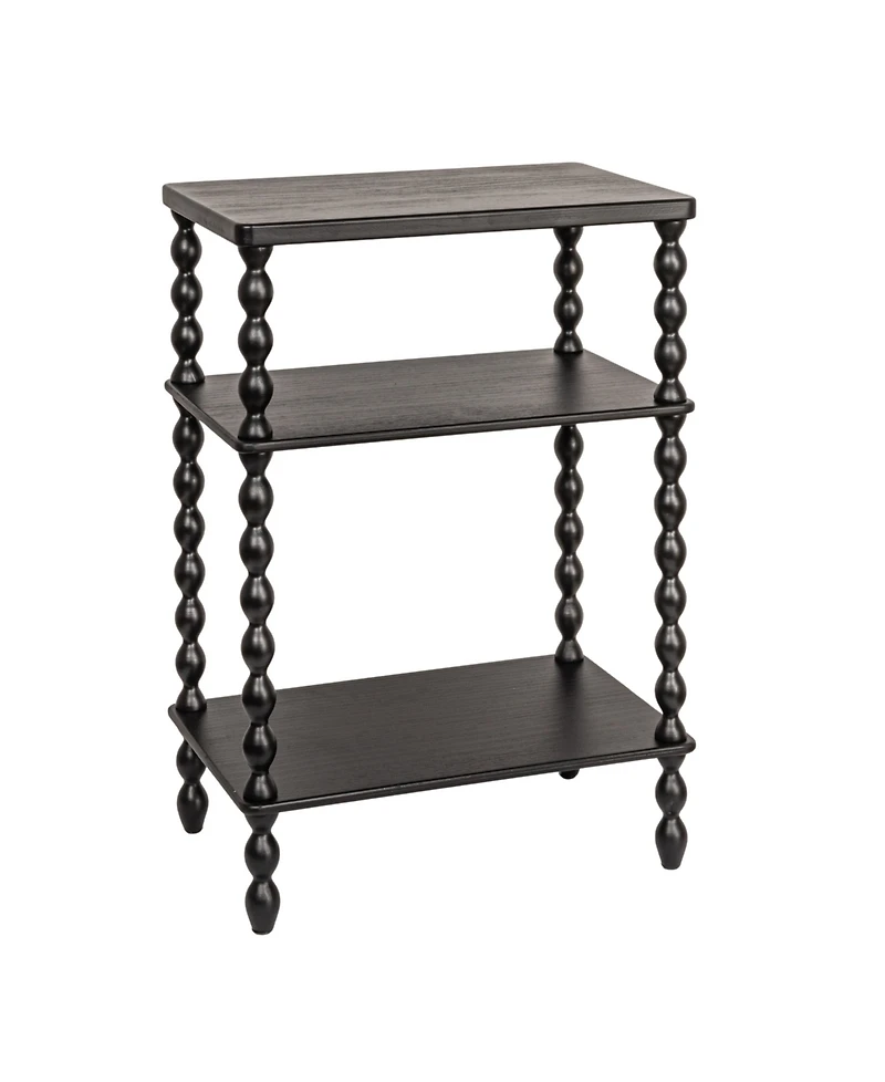 Bring timeless charm and functionality to your living space with this Bobbin Leg Rectangle Wood Accent Table. Crafted with a durable wood construction, this table features elegant spindle-style legs and three tiers of open shelving. Perfect for displaying books, decorative items, or storing everyday essentials, this accent table is an excellent addition to your home decor.