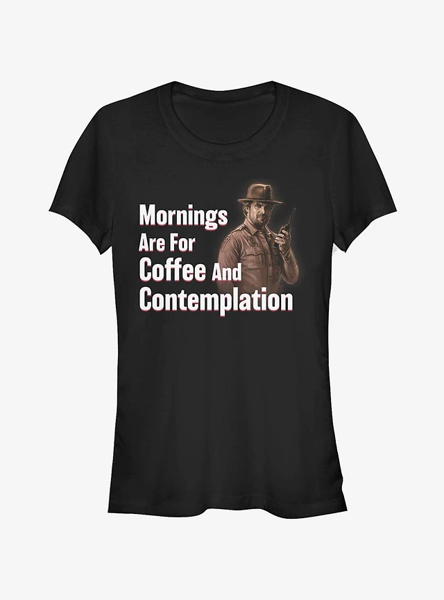 Stranger Things Coffee and Contemplation Chief Hopper Girls T-Shirt