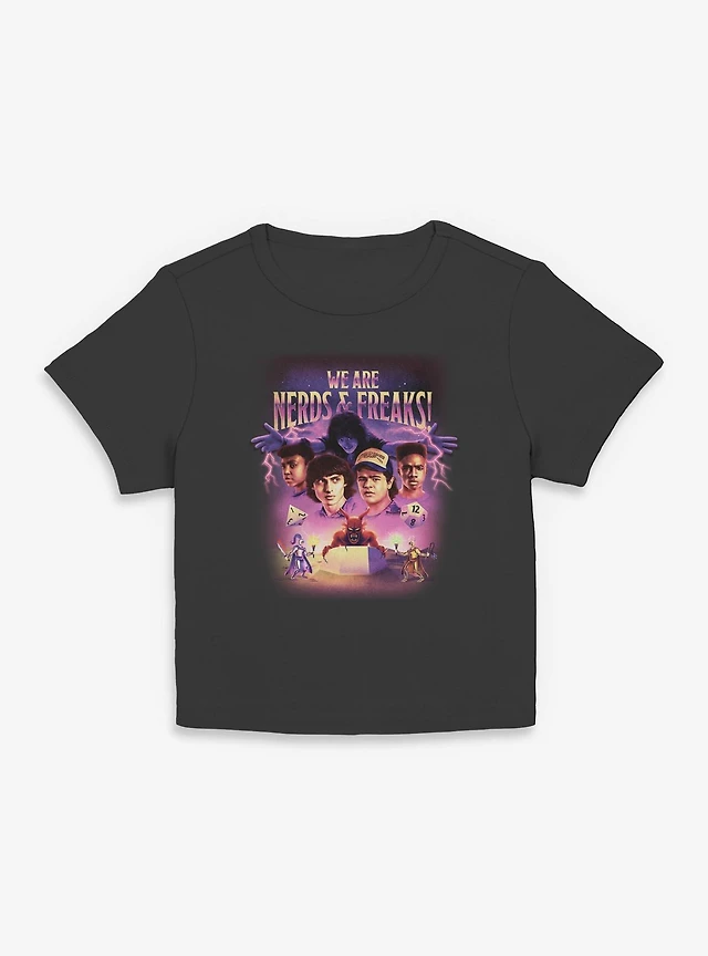 Stranger Things We Are Nerds Freaks Retro Womens Mineral Wash Crop T-Shirt