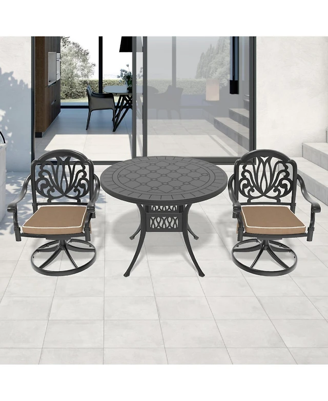 Streamdale 3-pc Cast Aluminum Dining Set, 2 Swivel Chairs & 35" Round Table