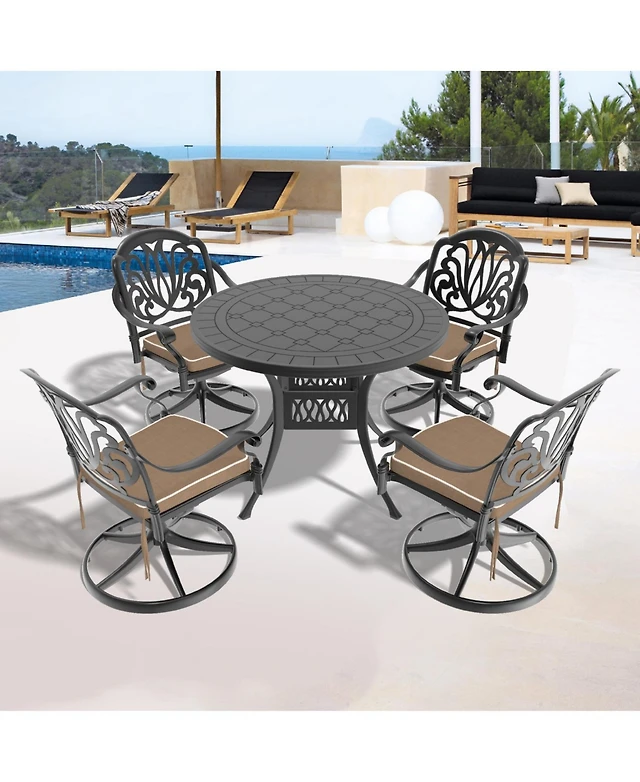 Streamdale 5-Pc Cast Aluminum Dining Set, 4 Swivel Chairs, 47" Round Table
