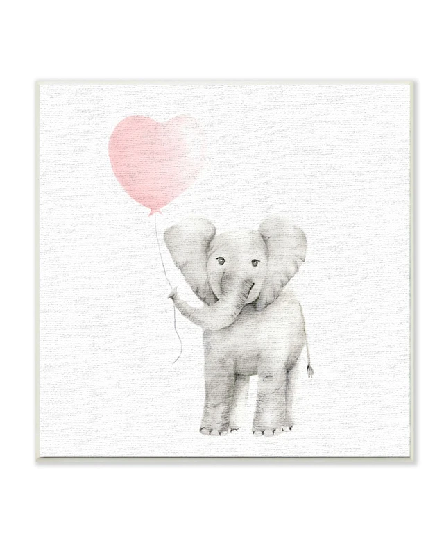 Stupell Industries Baby Elephant Heart Balloon Linen Look Wall Plaque Art, 12" x 12"