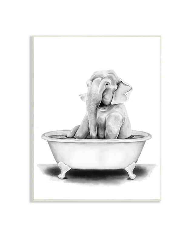 Stupell Industries Elephant in a Tub Funny Animal Bathroom Drawing Wall Plaque Art, 13" x 19"