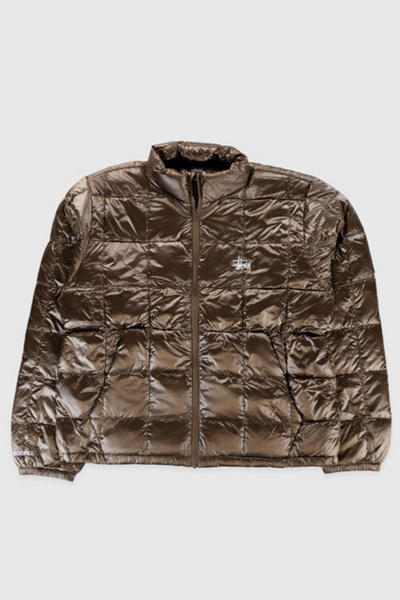 - Midweight insulated puffer jacket crafted from durable nylon, designed for warmth and everyday wear. Features a high stand collar, hidden front zipper with snap placket, elastic cuffs, and adjustable hem for a secure fit. Finished with subtle Stussy branding at the chest. Released Fall/Winter 2025.