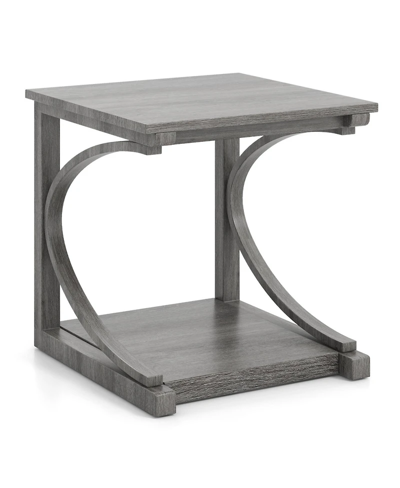Bring flexible function to tight spaces with this C-shaped side table, designed to slide neatly beside sofas or beds for easy access. A roomy square top and lower shelf keep books, decor, and daily essentials organized, while the warm wood-look finish adds inviting character to modern or classic rooms.