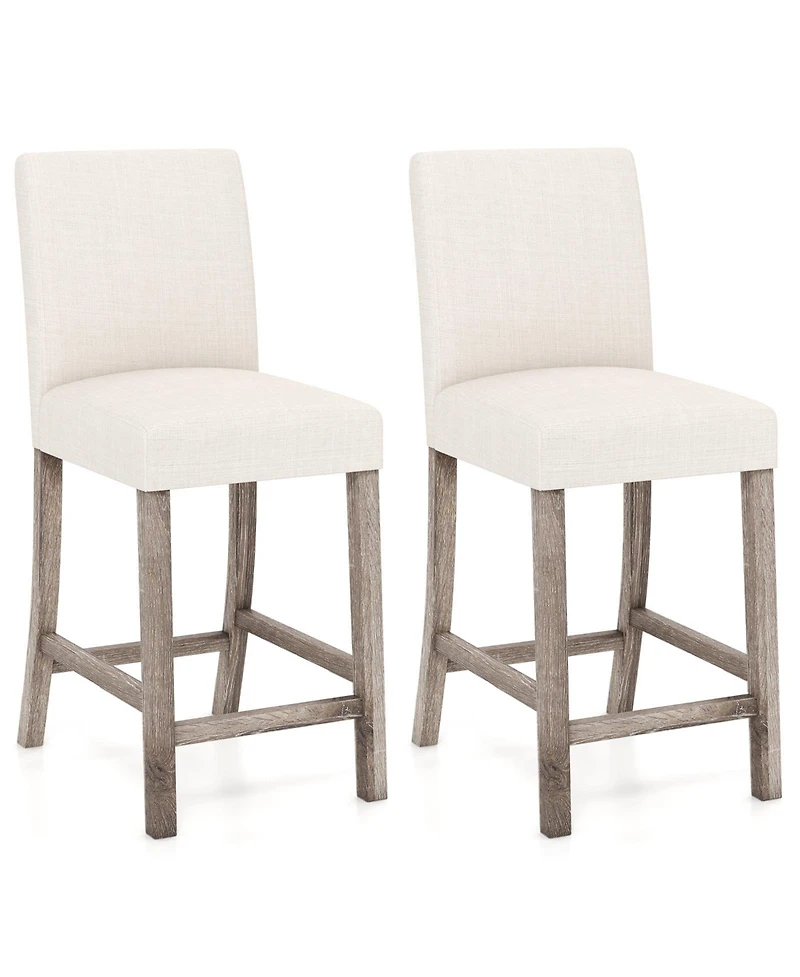 Enhance your space with this set of counter height stools, crafted from durable rubber wood for lasting use. Each stool supports up to 160 kg and features non-slip foot pads for stability. The high-density sponge and breathable linen upholstery ensure comfort, while the ergonomic design offers support. Ideal for kitchen islands, assembly is simple.