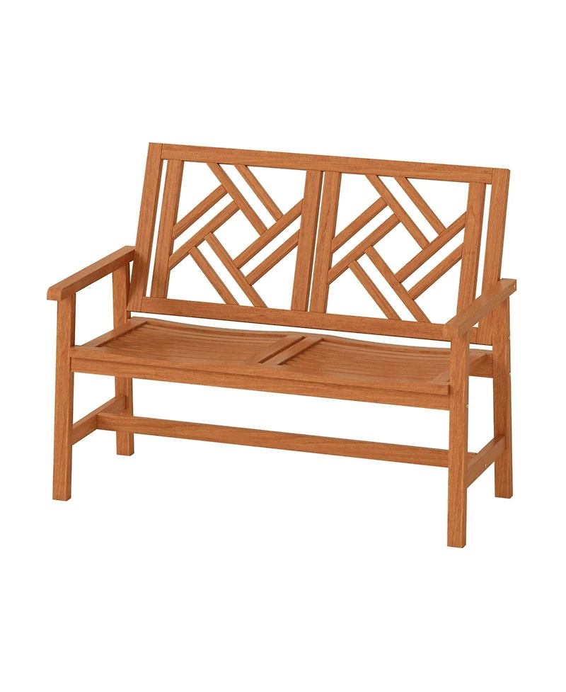 Sugift Outdoor Wood Patio Loveseat Chair with Geometric Backrest