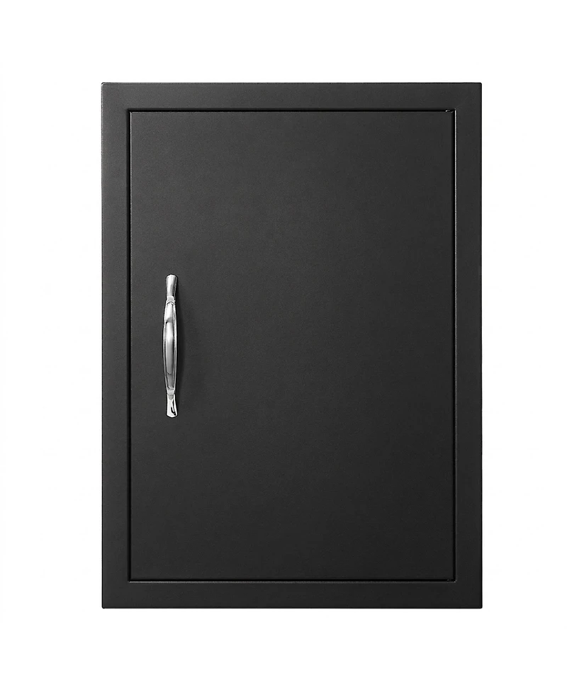 Bring polished function to your cooking setup with a matte black access door sized for built-in grill stations and prep areas. Its powder-coated steel frame resists water and rust, while the seamless look, magnetic closure and reversible swing help keep stored items protected, organized and easy to reach in changing weather.
