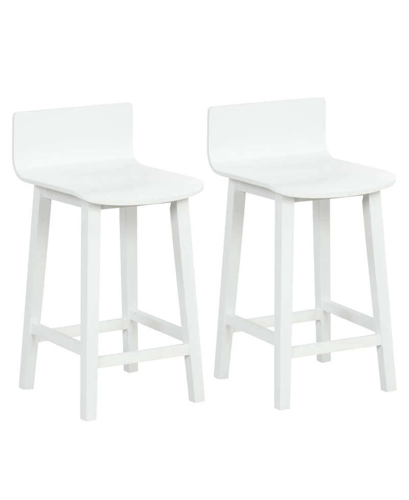 Sugift Wood Bar Stools Set of Two with Solid Back and Seat