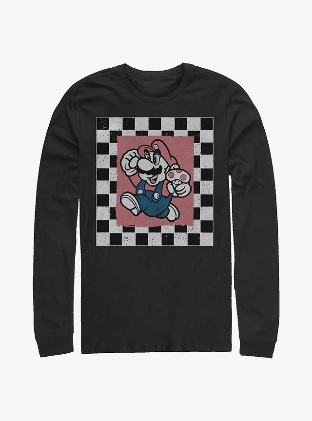 Super Mario Checkered Passed Long-Sleeve T-Shirt
