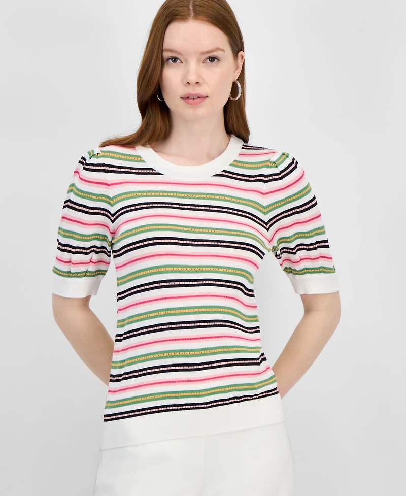 T Tahari Women's Striped Puff-Sleeve SweaterT Tahari Women's Striped Puff-Sleeve Sweater