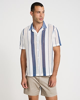 Textured Crochet Cotton-Blend Short Sleeve Shirt