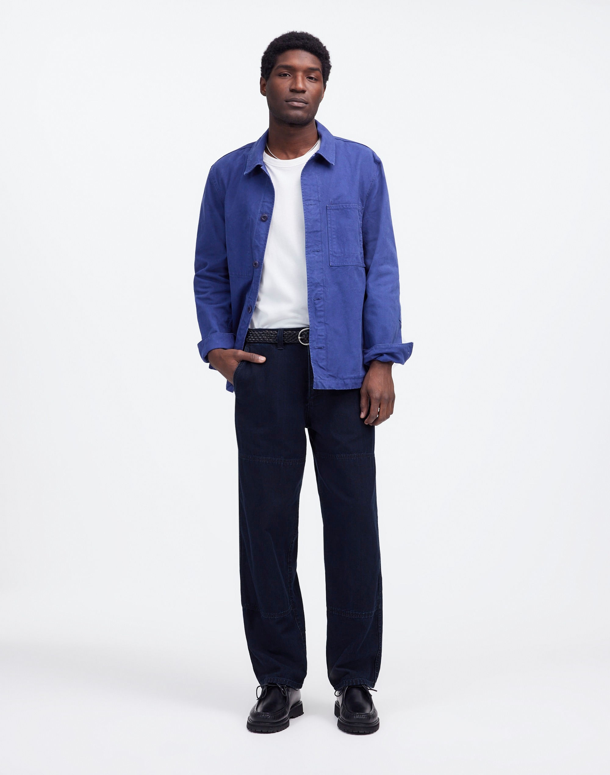 A redesign of our best-selling Relaxed Straight Workwear Pants, cut with a little extra wiggle room. Made from indigo-dyed canvas, these utility pants feature hidden double knees, a button fly closure and a convenient coin pocket.