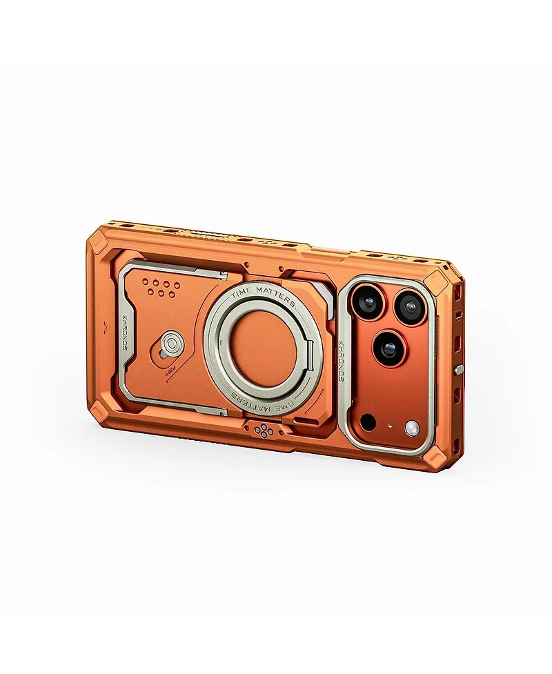 Introducing the Khronos iPhone 17 Pro Max Case, the next generation of mobile filmmaking.Designed meticulously for both models of iPhone 17, this camera cage inspired smartphone case offers an unparalleled blend of functionality and elegance. Built to shield your phone from daily wear and tear, the Khronos case offers reliable protection without compromising on style or functionality.Installation is easier than ever as this updated case features a quick release snap in design, allowing users to install or remove the case quickly while ensuring any connected accessories remain securely attached.Equipped with multiple mounting points, the innovative locking clamp mechanism ensures secure connections for additional accessories such as Focus Side Handles, Cooling Modules, Filters, On-Board Lights, Usb-c Hubs and much more.