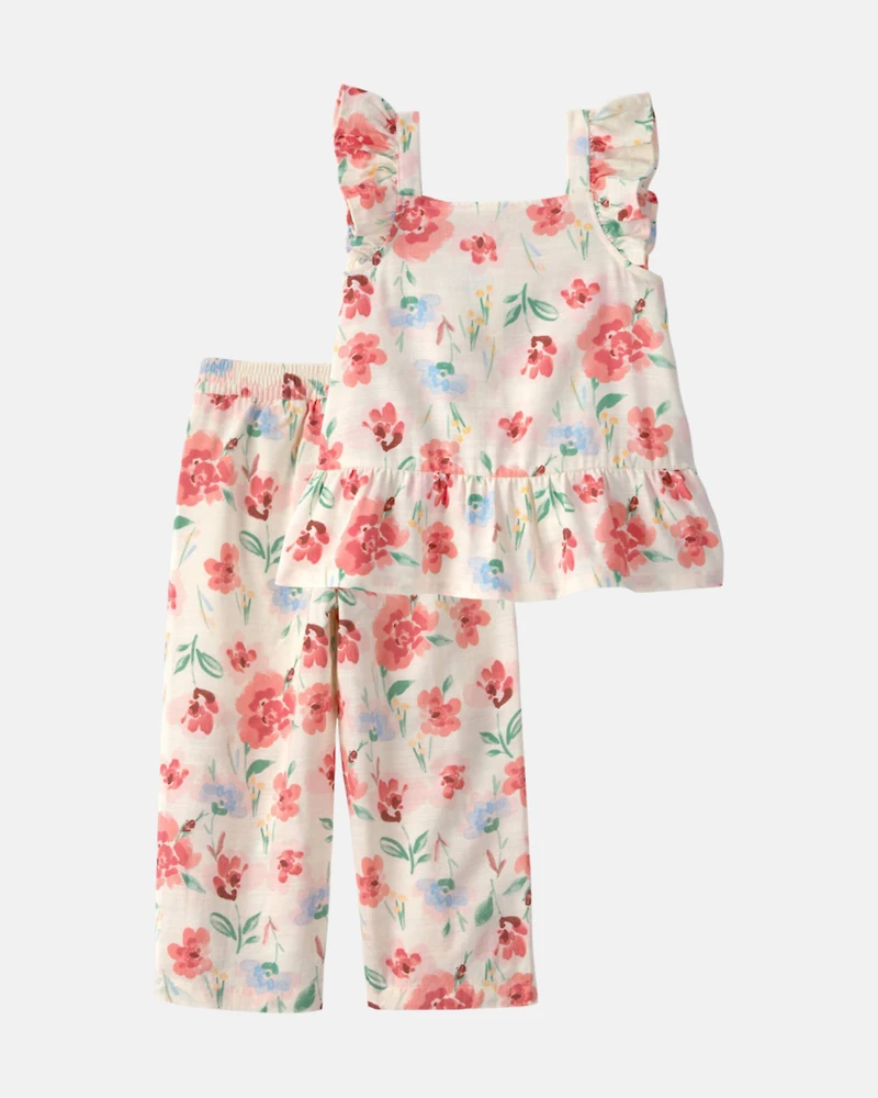 Toddler Girl 2-Piece Floral Top & Pant Set - White in Bloomington, MN