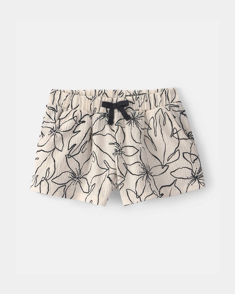 Toddler Girl Floral Crinkle Shorts - Black/Ivory