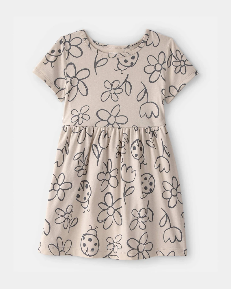 Toddler Girl Floral Ladybug Short-Sleeve Dress - Brown
